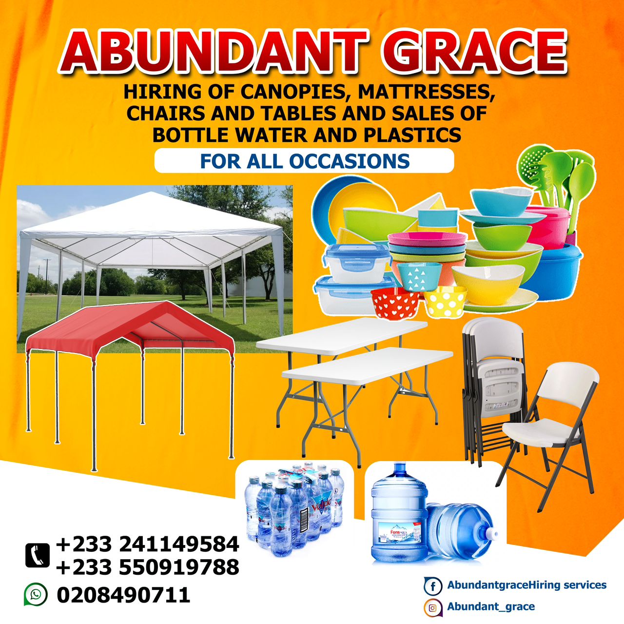 Visit us in Ho Dome, on Tarso Road. To learn more about our rental services or to place an order, call us at 02084907011. We’re here to make your event unforgettable!